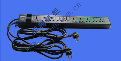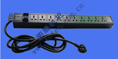 黑色12位国标PDU,10A国标三扁插头输入,10A万用插座输出,带总开关,线长3M,反方向安装