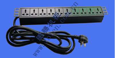 黑色10位国标PDU,16A国标三扁插头输入,10A万用插座输出,无开关,线长3M,19"正方向安装